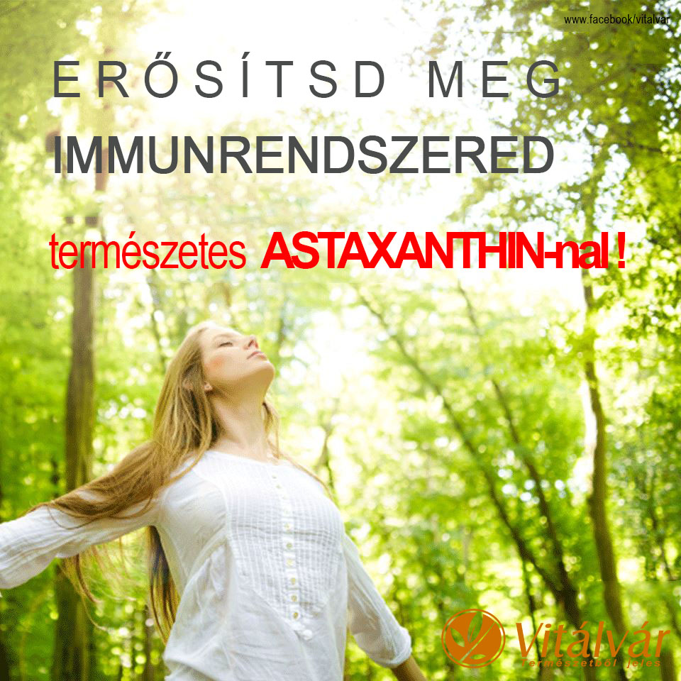 Klinikai tanulmányok igazolják, hogy a természetes astaxanthin növelve az antitestet termelő sejtek számát, javítja az immunrendszert, valamint védi az immunsejteket az oxidatív stressztől és a sejthártya-károsodástól. A természetes astaxanthin növeli szervezetünk védekezőképességét, ugyanakkor gátolja a túlzott immunreakciót, megelőzve ezzel nemkívánatos fertőzések kialakulását.