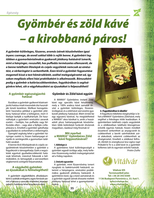 A fogyókúra tökéletes kiegészítője is lehet a MAKKA® Gyömbéres Zöld kávé, mely segíthet a felesleges kilók leadásában. A gyömbérben található csípős vegyületek és a zöldkávéban található klorogénsav erősítik egymás hatását, hiszen mindkét összetevő serkentheti az anyagcserét és csökkentheti a bevitt szénhidrátok zsírrá alakulását, valamint csökkentheti az éhségérzetet. Emellett a zöldkávé felfrissít, élénkít és energikussá tesz egész nap! Próbáld ki Te is a zöld kávé és a gyömbér kellemes ízét és egymást erősítő hatását.