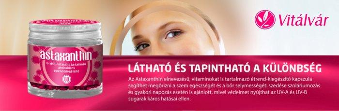A Brunswick-i laboratóriumban végzett független vizsgálat azt mutatta ki, hogy az asztaxantin sokkal hatékonyabb antioxidáns mint az E-vitamin. A karotinoidok rákellenes hatása nagy figyelmet kapott annak köszönhetően, hogy feltárták az összefüggést a karotinoidok alacsony szintje és a rákos megbetegedések gyakorisága között. Az asztaxantin meg tudja kötni a szabadgyököket és képes megvédeni a membrán foszfolipideket a szabad gyökökkel szemben. A Vitálvár Kft. által forgalmazott termékek közül az AlgaVitben és a Astaxanthinban találhatunk asztaxantint. |