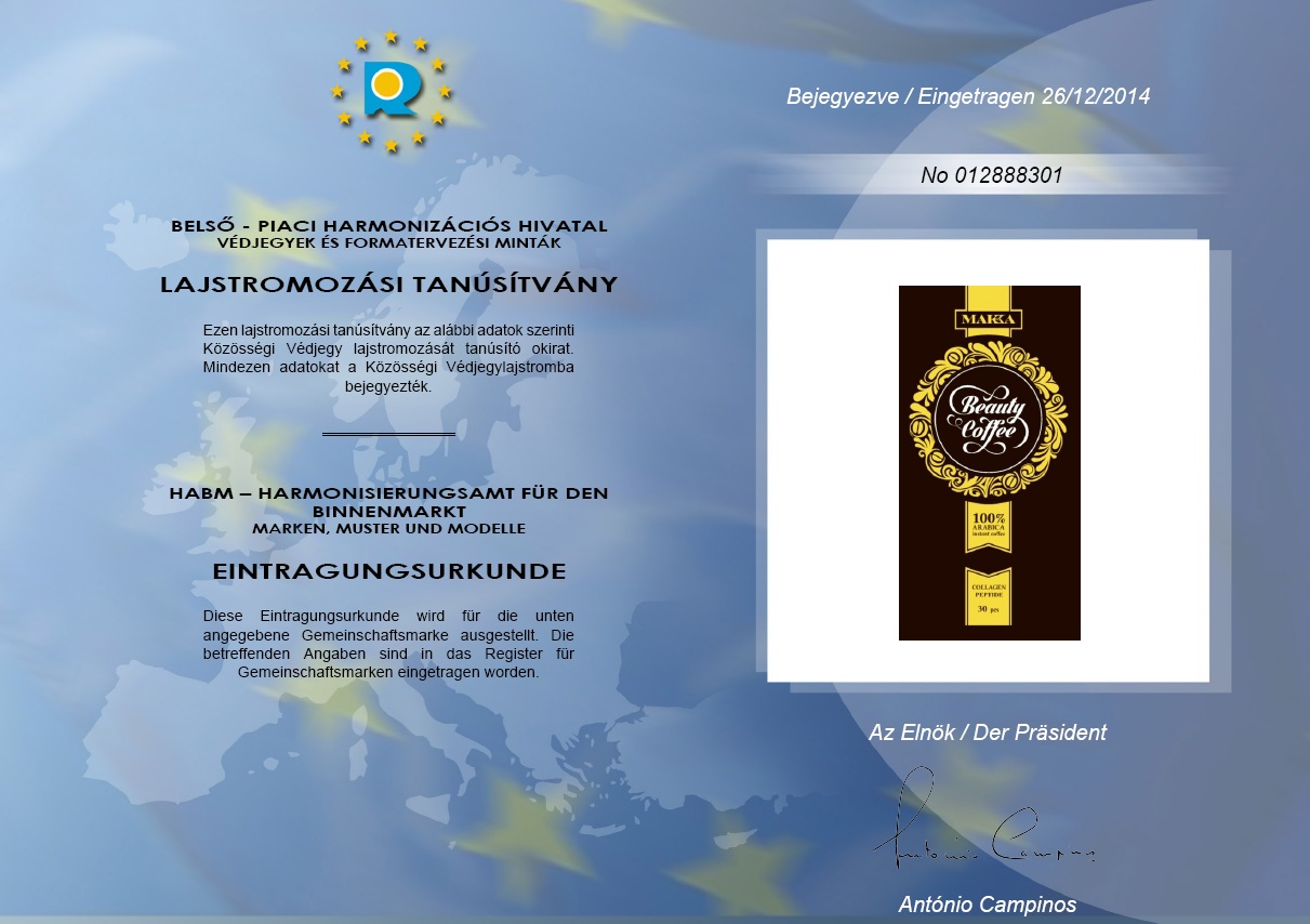 A MAKKA® kollagént tartalmazó Beauty Coffee innovatív táplálkozási kozmetikum nemzetközi oltalomszerzésének projektje:
